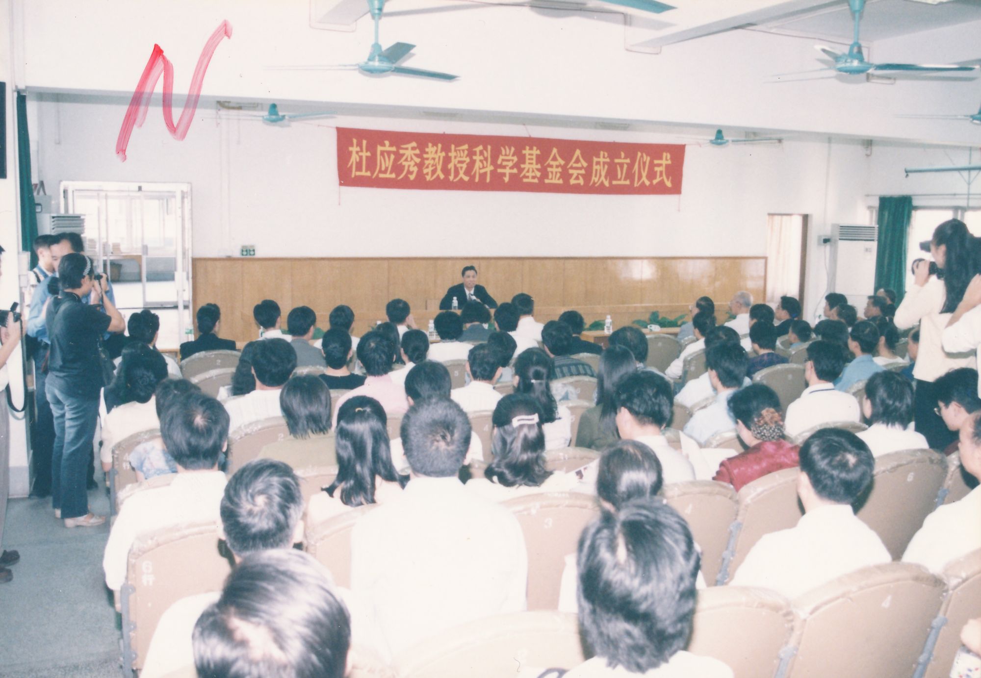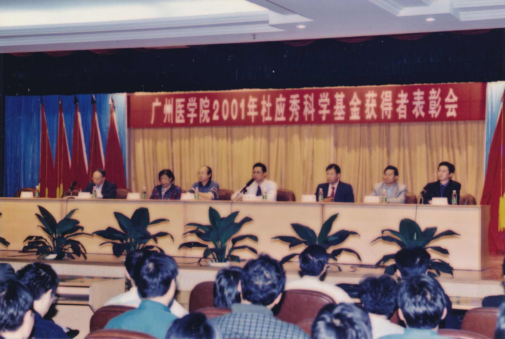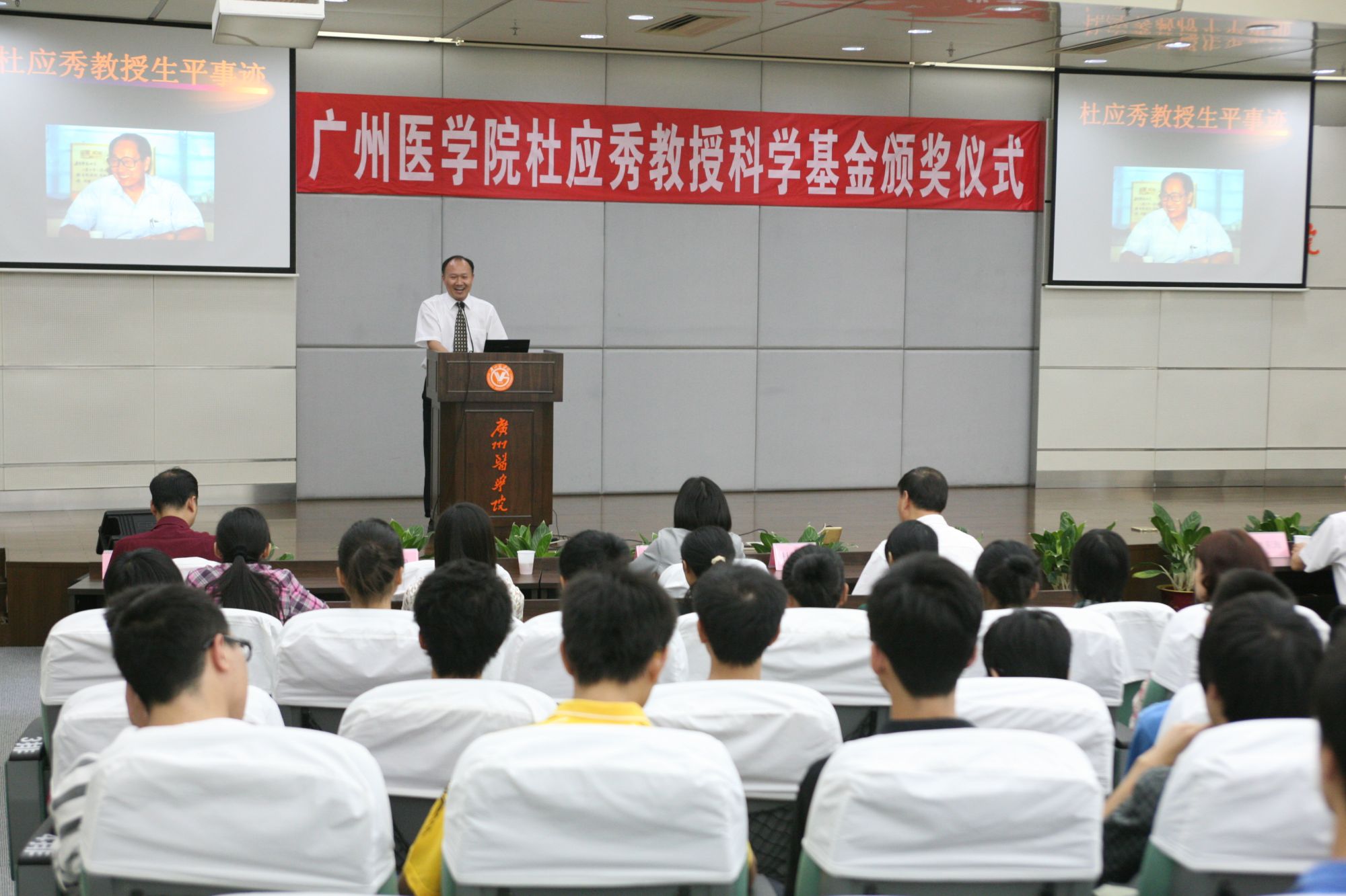 为了学习和发扬杜应秀教授热爱医学教育和刻苦钻研的科学精神,奖励学院优秀研究生和有突出科研成果的师生,资助有困难的学生,学校于1998年成立了由钟南山院士为首届会长的广州医学院杜应秀教授科学基金会及理事会,根据有关人员的变动情况,学校分别于2001年、2008年、2010年调整了杜应秀教授基金会理事会成员,现任会长为魏东海副校长(广医办〔2008〕22号)。2011年,魏东海副校长曾主持召开杜应秀教授科学基金理事会成员工作会议,对杜应秀教授科学基金的运作等事宜进行了讨论,考虑到基金每年利息收益较少,理事会决定该基金只奖励给我校公共卫生学院师生。经学校办公会议讨论确定,杜应秀教授科学基金奖励范围为公共卫生学院学生。2011年10月,学校举行了广州医学院杜应秀教授科学基金颁奖仪式。学校副校长魏东海教授、公共卫生学院院长王家骥教授、副院长雷毅雄教授及杜应秀教授的儿子香港中文大学杜如虚教授为获奖的5位同学罗晓英、朱键婷、陈玉冰、孔锐、潘茗颁发了荣誉证书及奖金。