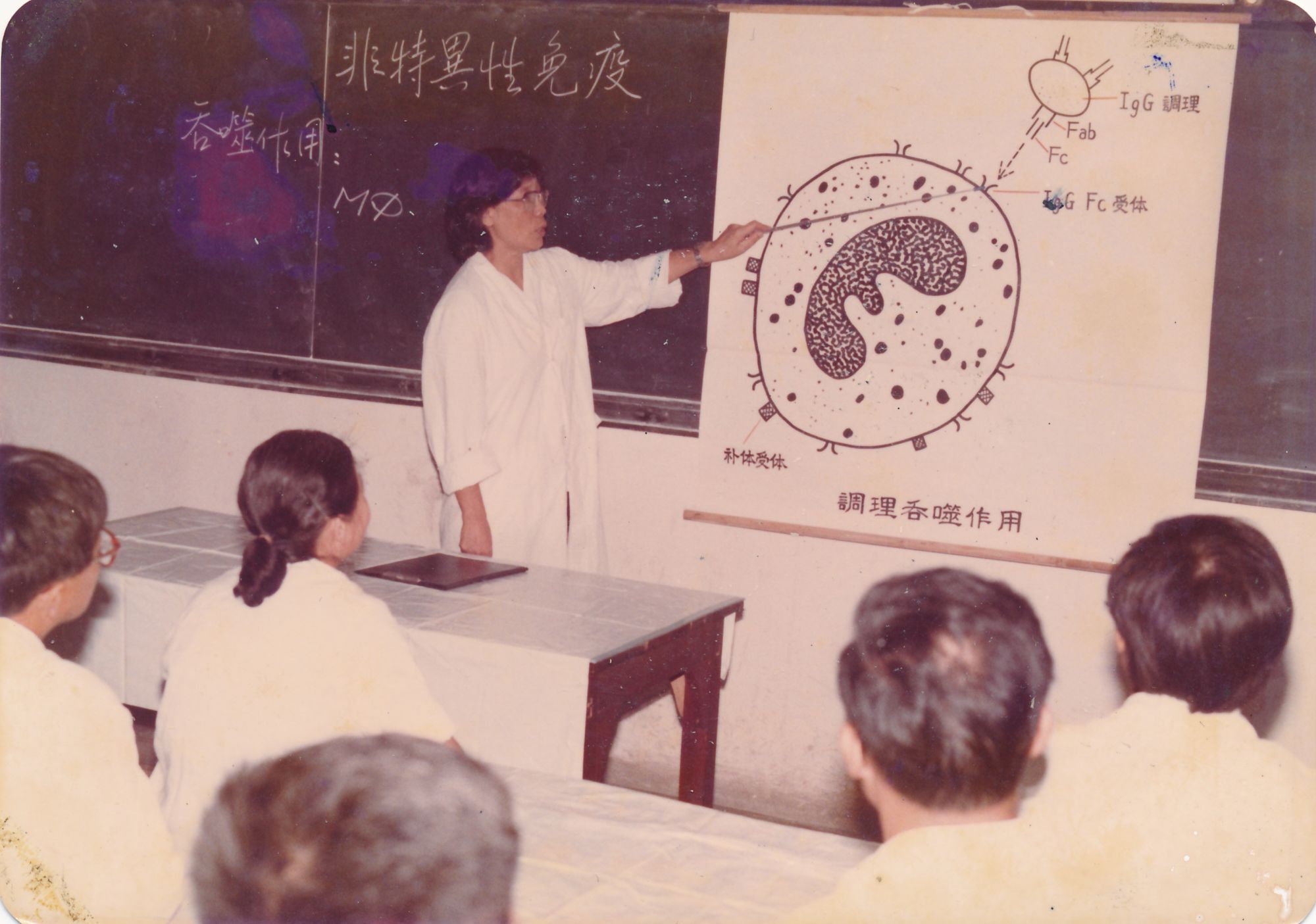在教学上,梁教授以一丝不苟的态度对待教学。一次,她对课本上一个细菌分类方法产生怀疑,马上查找资料,最后证实是错的,及时改正过来。为了保证教学质量,梁教授坚持参加和指导教研室的集体备课、教学实验、辅导答疑、考查考试命题、改卷等工作,解决教学过程中出现的问题。梁教授经常到图书馆查阅资料,充实教学内容,力求课堂讲授能反映本专业的发展方向。为了提高教学效果,梁教授十分注意以科研带教学,先后建立起免疫荧光技术、免疫酶联技术、单克隆抗体技术等,大大充实了教学内容。梁教授十分注意改进教学方法,思考如何才能取得良好的课堂教学效果。她讲课内容丰富,深入浅出,层次分明,重点突出,深受学生欢迎。为表彰梁教授在教学中的突出贡献,1985年广东省高教局授予她优秀教师称号;1986年,经国务院学位委员会批准,梁教授领衔的免疫学获得硕士研究生学位授予权。