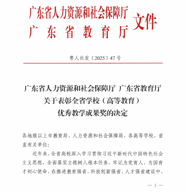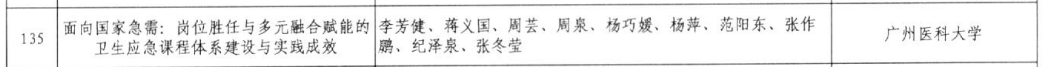 近日,广东省人力资源和社会保障厅、广东省教育厅联合发文公布了全省学校(高等教育)优秀教学成果奖获奖名单,以我院李芳健教授为第一完成人,蒋义国、周芸、周泉、杨巧媛、杨萍等老师为主要完成人的《面向国家急需:岗位胜任与多元融合赋能的卫生应急课程体系建设与实践成效》成果,荣获优秀教学成果本科类一等奖。